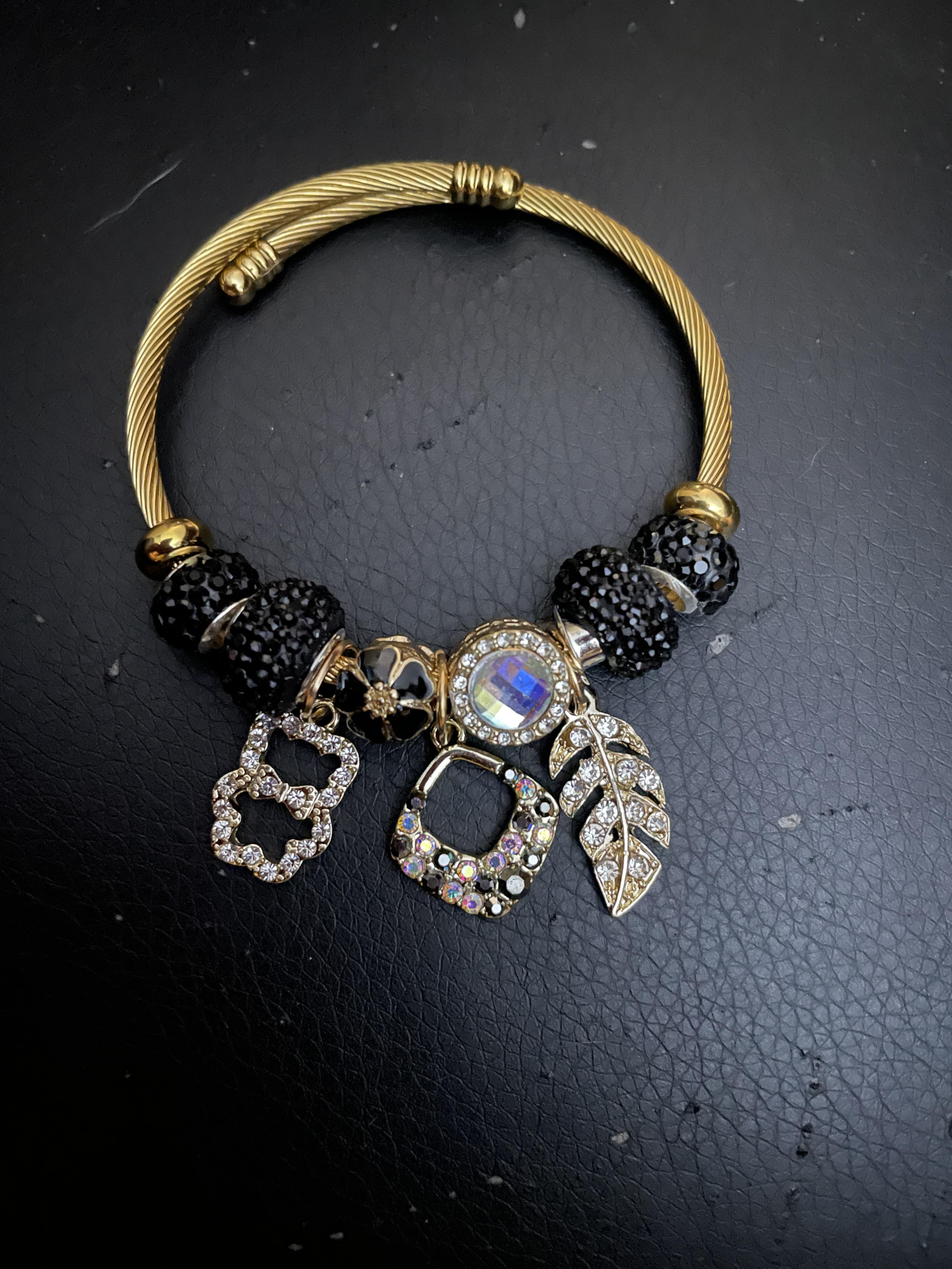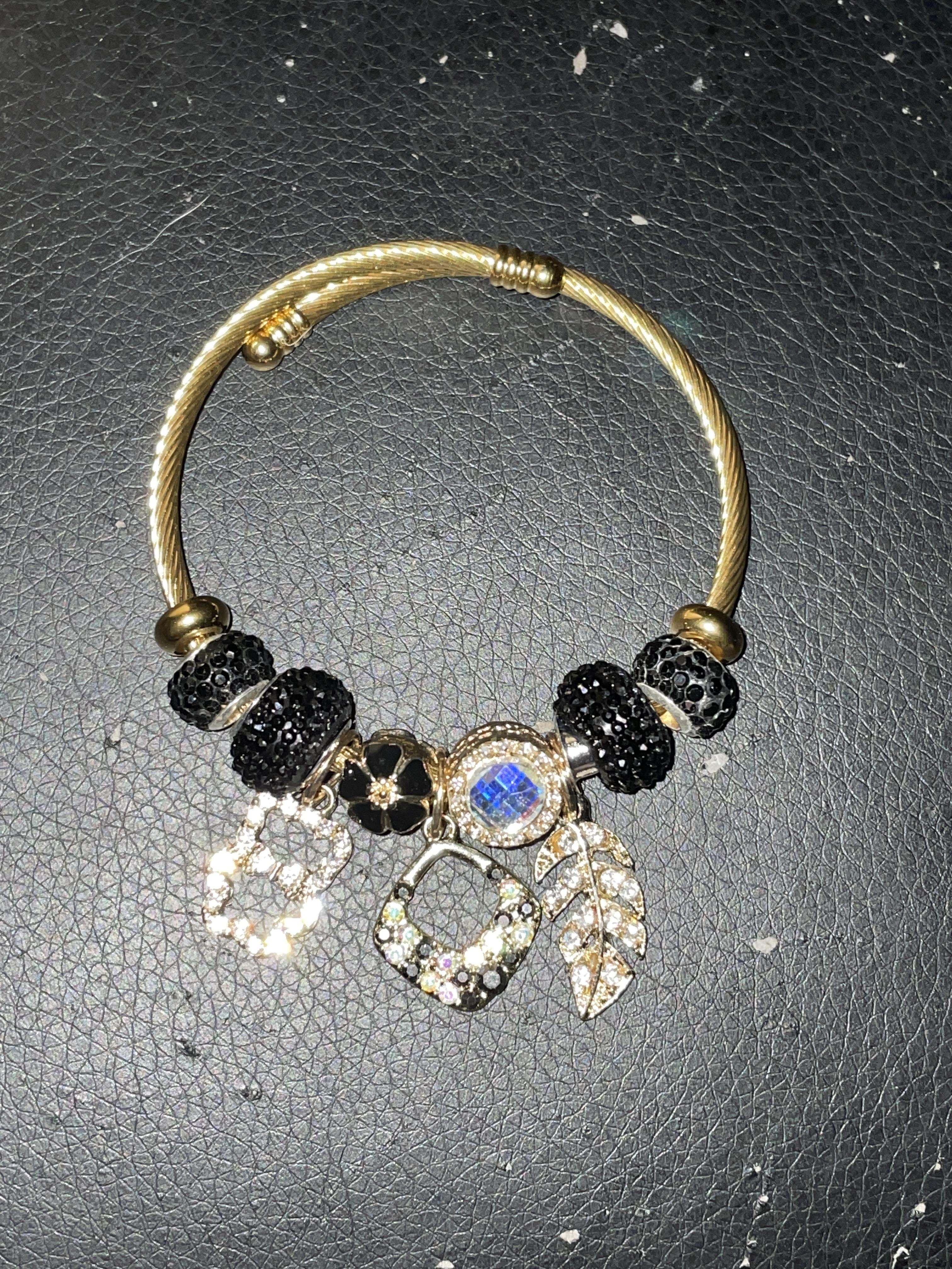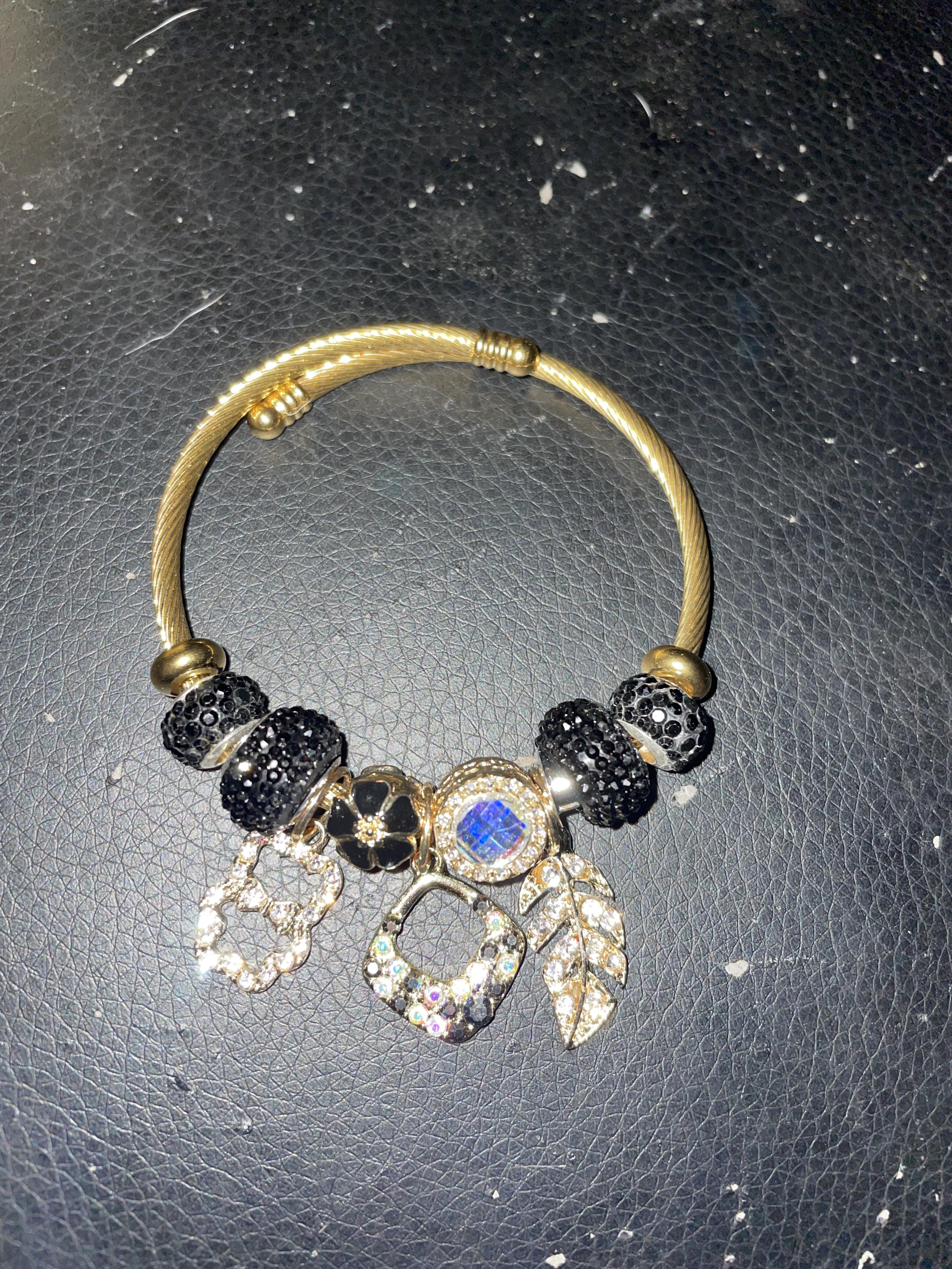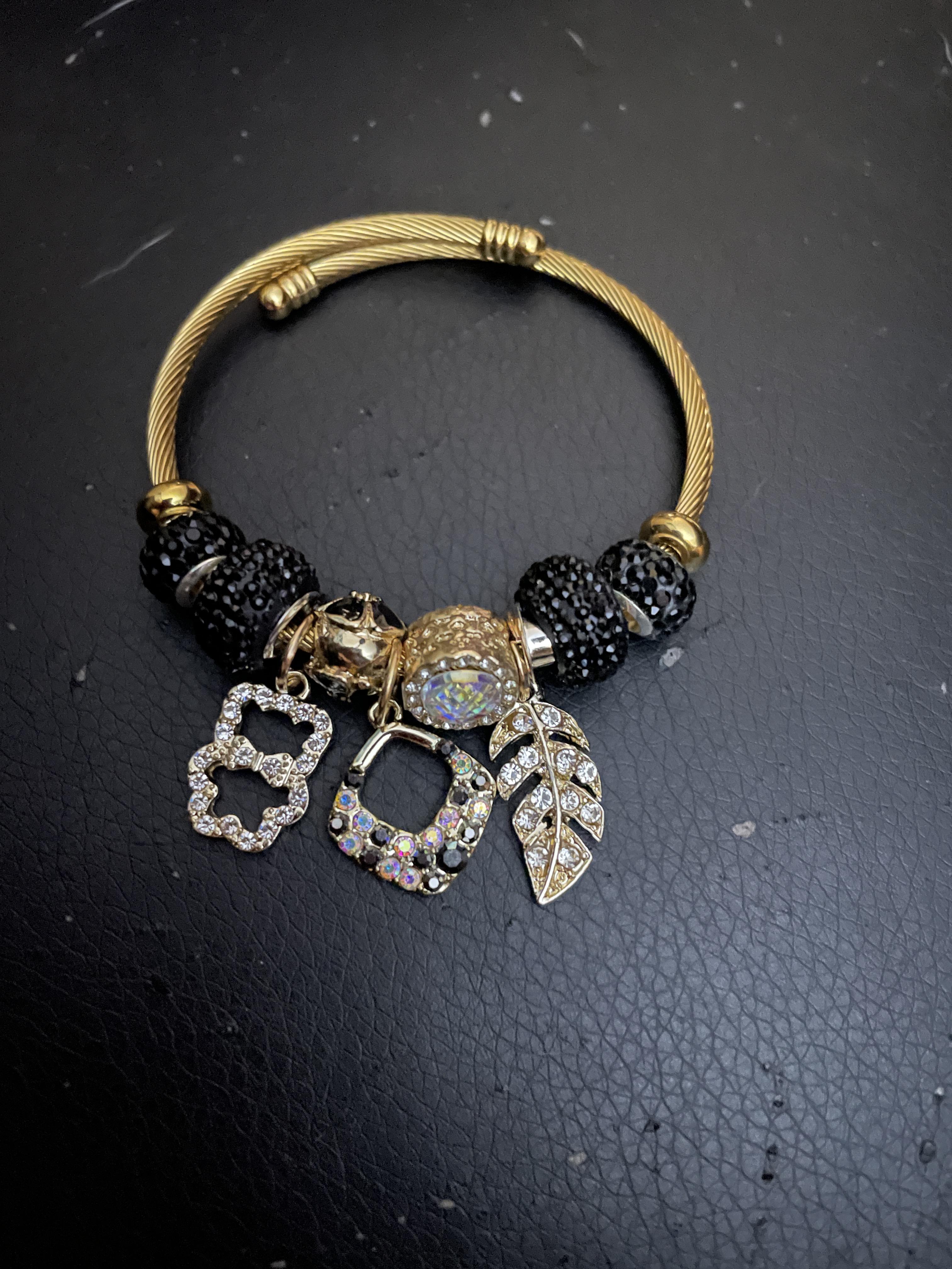 Pandora feather & bear bracelet - Laminated Gold/ Oro Laminado